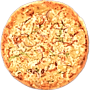 Azerbaycan'da tercih edebileceğiniz zengin malzemeli bir pizza: Mozzarella peyniri, tavuk, mantar, biber, mısır ve soğan.