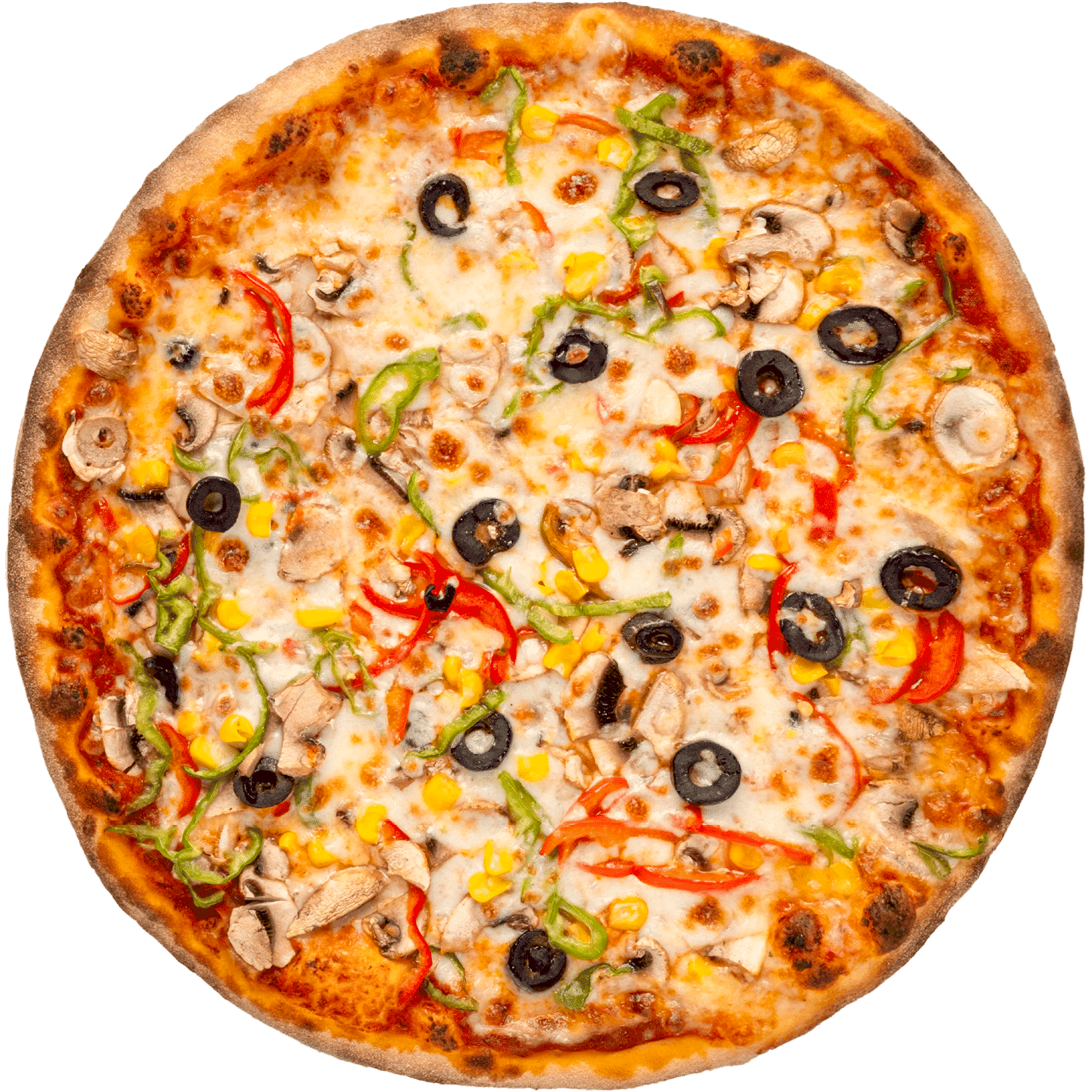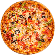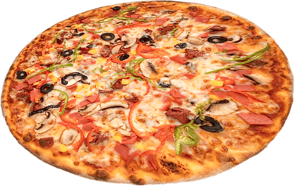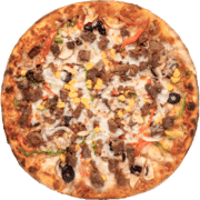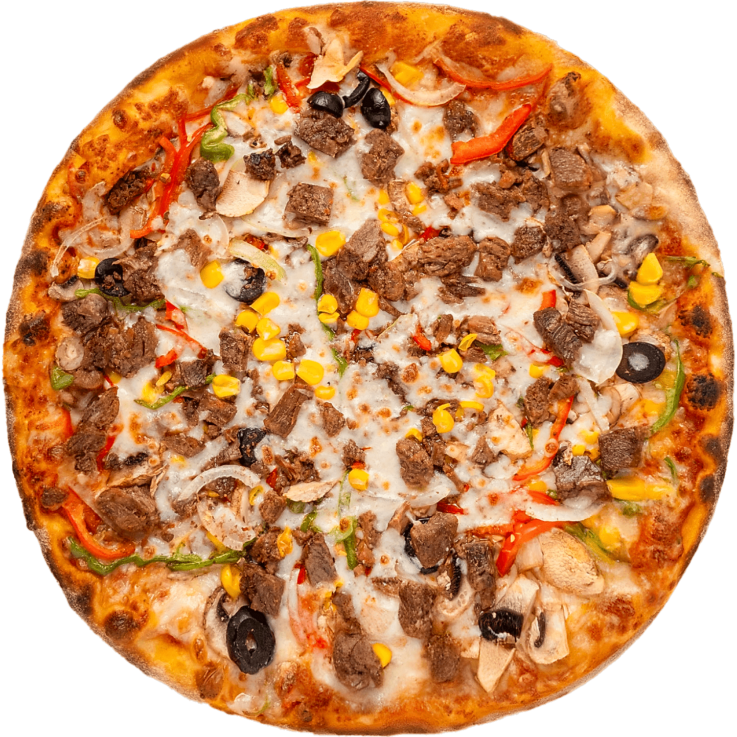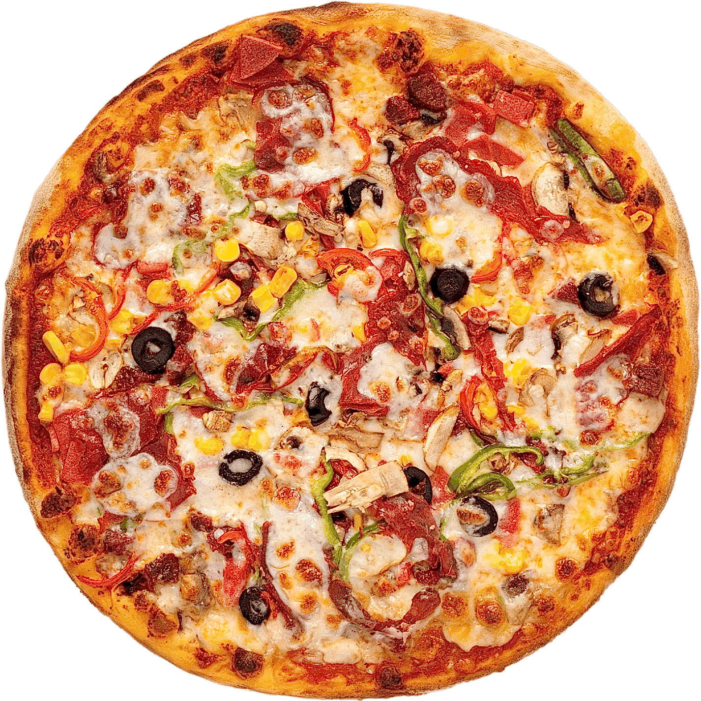 Mozzarella Cheese, Pizza Sauce, Corn, Mushroom, Sausage, Salami, Pepper, Olives