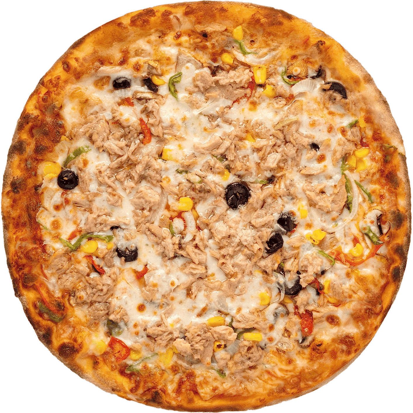 Mozzarella Cheese, Pizza Sauce, Tuna, Mushroom, Pepper, Olive, Corn, Onion