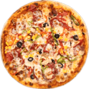 Mozzarella Cheese, Pizza Sauce, Bacon, Salami, Sausage, Mushroom, Pepper, Olive, Corn