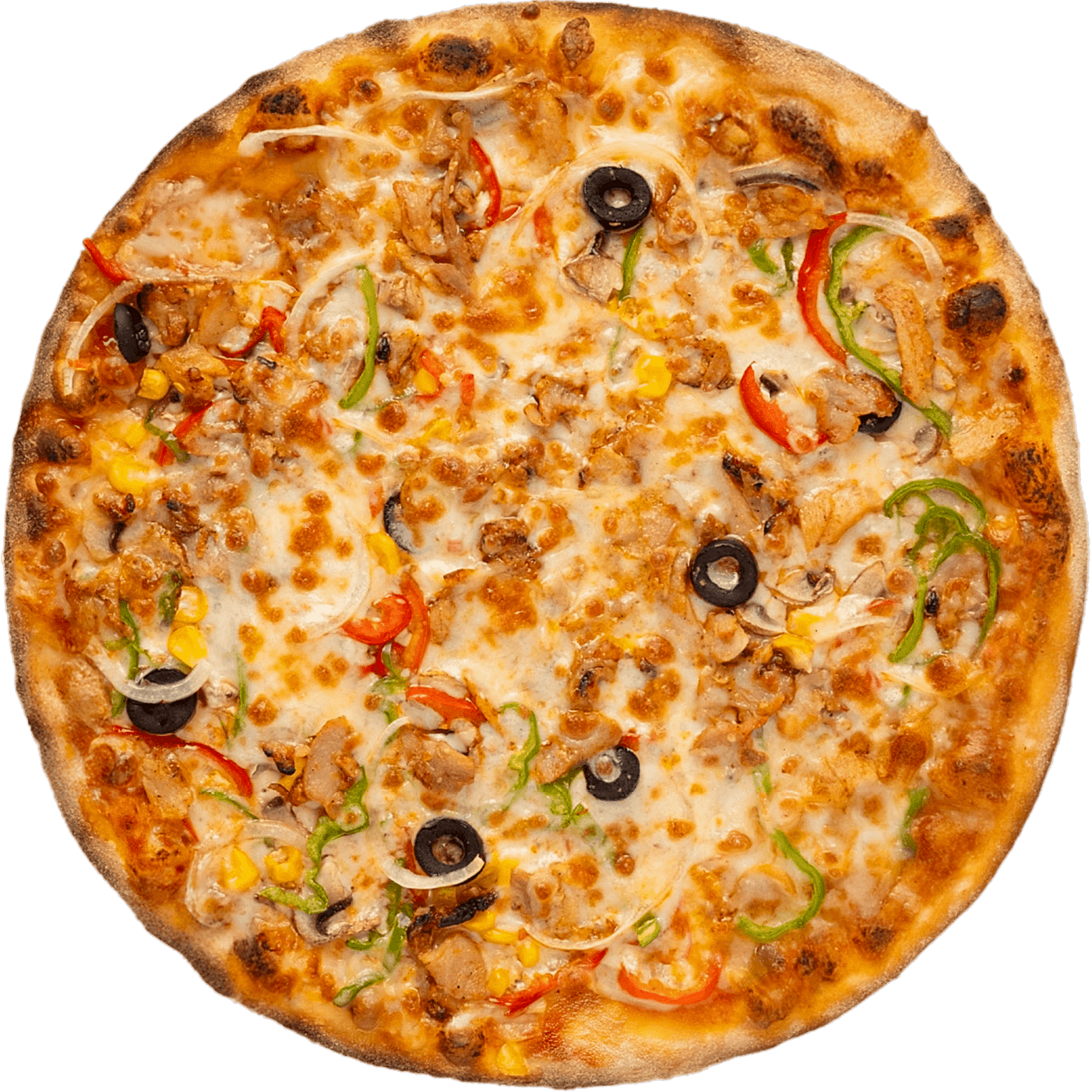 Mozzarella Cheese, Pizza Sauce, Doner Chicken, Mushroom, Pepper, Corn, Olive, Onion