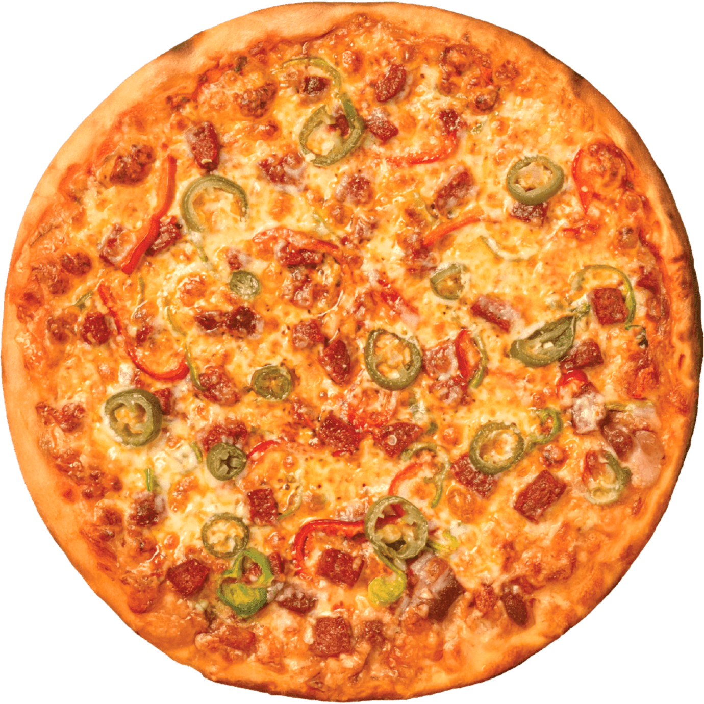 Ingredients; Mozzarella Cheese, Pizza Sauce, Pepper, Jalapeno Pepper, Sausage.