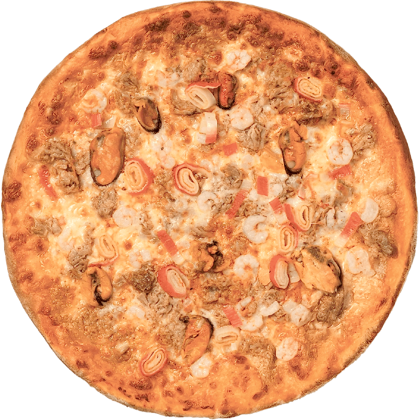 Ingredients; Mozzarella Cheese, Pizza Sauce, Tuna, Mussels, Shrimp, Surimi.