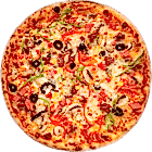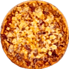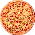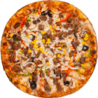 İçindekiler; Mozzarella Peyniri, Pizza Sosu, Kavurma, Mantar, Biber, Zeytin, Mısır, Soğan