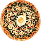 İçindekiler; Mozzarella Peyniri, Pizza Sosu, Ispanak, Mantar, Biber, Yumurta, Soğan.