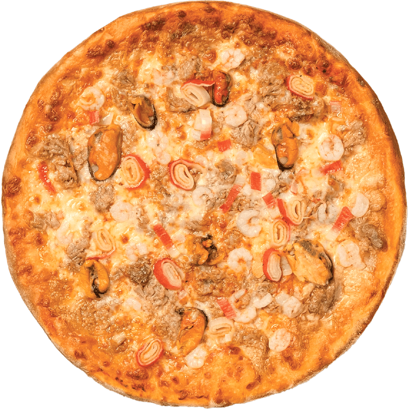 Содержание; Сыр Моцарелла, Соус для Пиццы, Тунец, Мидии, Креветки, Сурими.